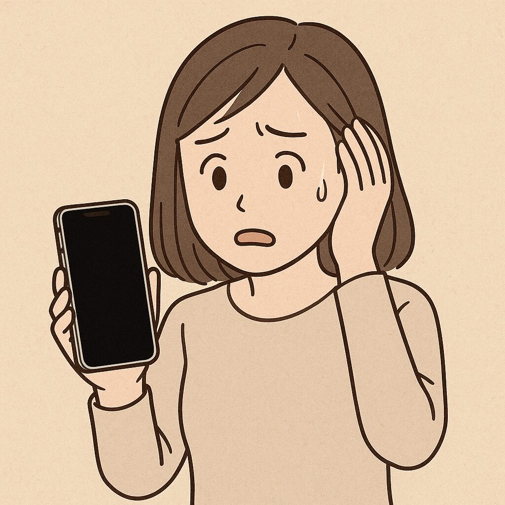 スマホの電源を入れても画面が真っ黒なまま。ホームボタンやサイドボタンを押しても反応せず、「もしかして電源が切れている?」と思って充電しても改善しない。そんなときは**ブラックアウト(画面表示不良)**の状態かもしれません。