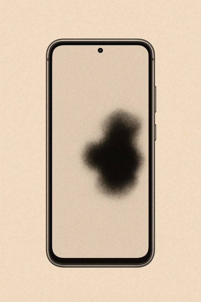 これは画面に強い圧力が加わったり、落下時にピンポイントで衝撃が加わることで、液晶層が破れて中の液体結晶が漏れ出すことで発生します。見た目にも「にじみ」や「滲んだインク」のように見え、タッチ操作も正常に反応しなくなることが多いです。