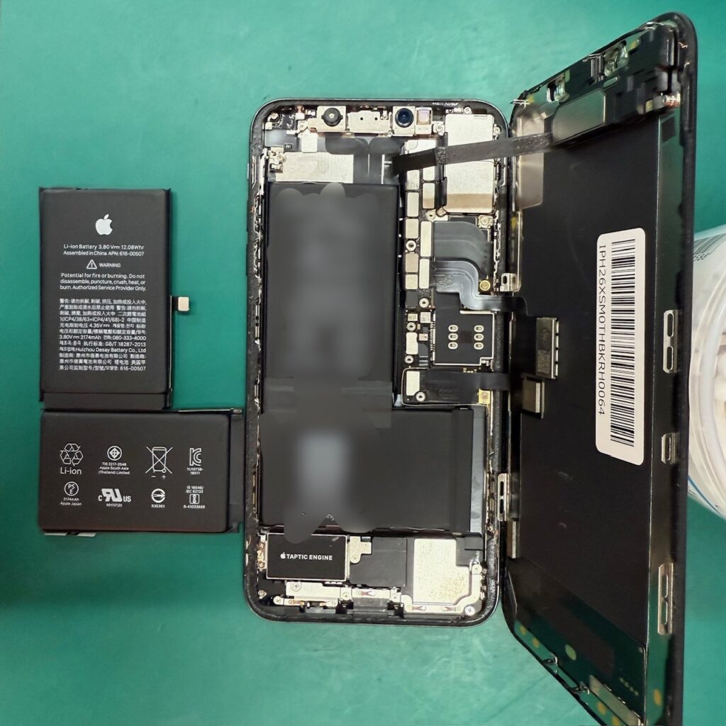 「iPhoneXS Maxの電池の減りが早くて交換を依頼。
