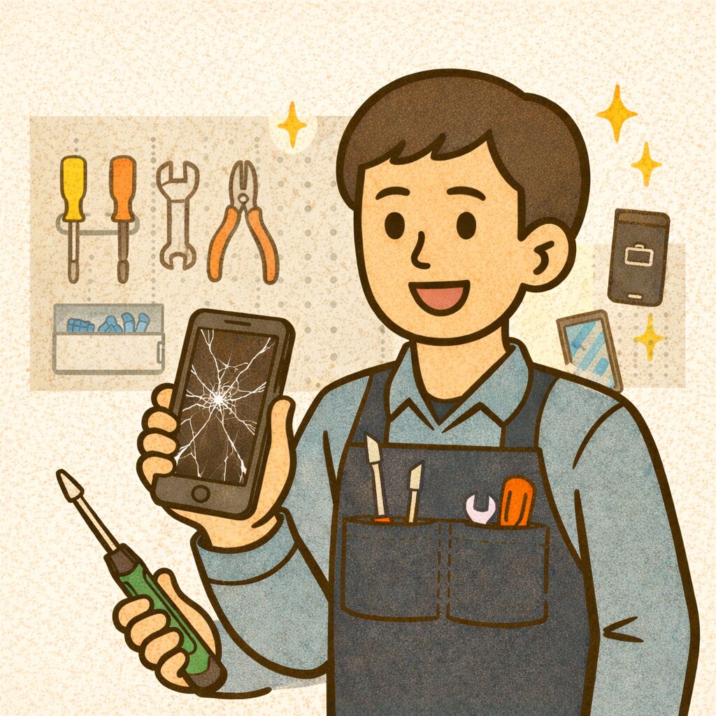 | 📱 画面割れ | 表面ガラスのヒビ割れ、液晶のにじみ、タッチが効きにくい | 割れが広がり、タッチ不良・ゴーストタッチに進行。破片で怪我することも。 |