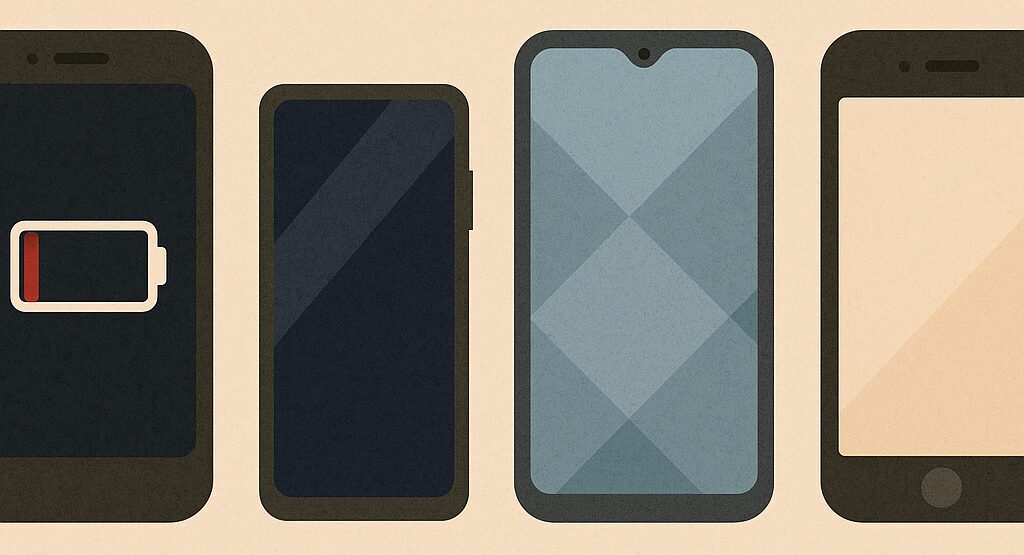 | 画面がバキバキに割れた | 「地面に落とした」「バッグの中で潰れた」などによる液晶画面破損。タッチは効くが見づらく危険な状態。 | ガラス・液晶パネルを丸ごと交換し、安全・見た目も元通り。最短30分で即日修理完了!データもそのまま! |